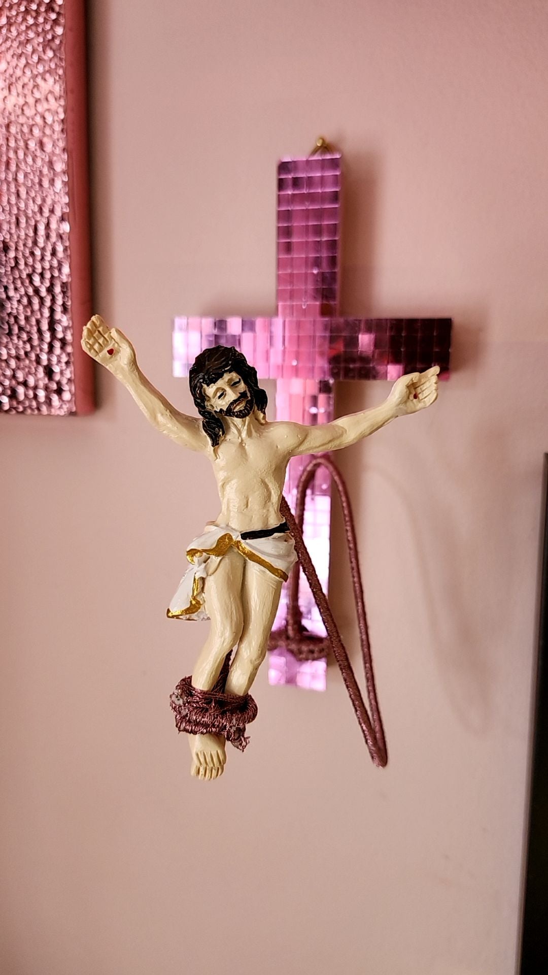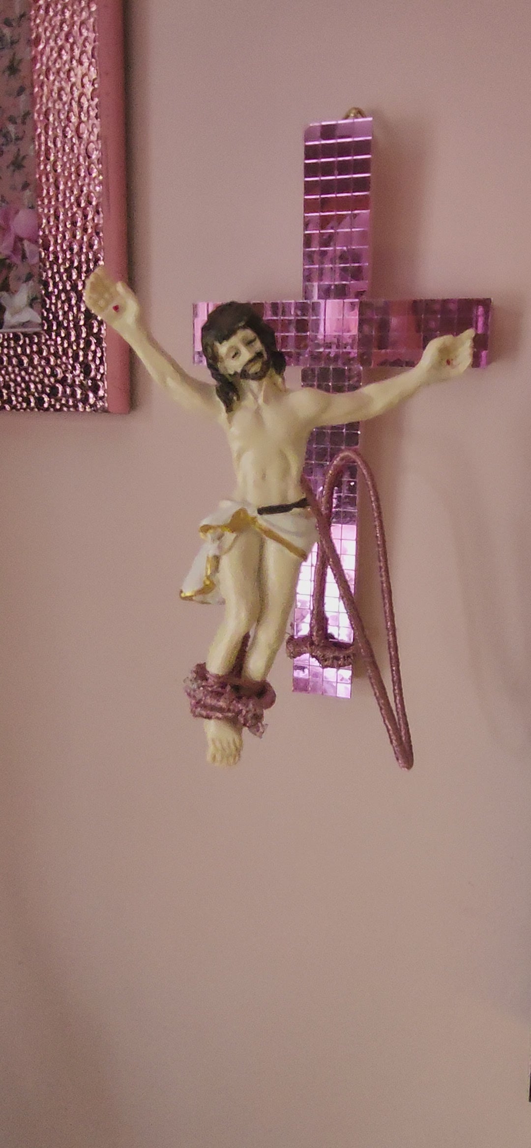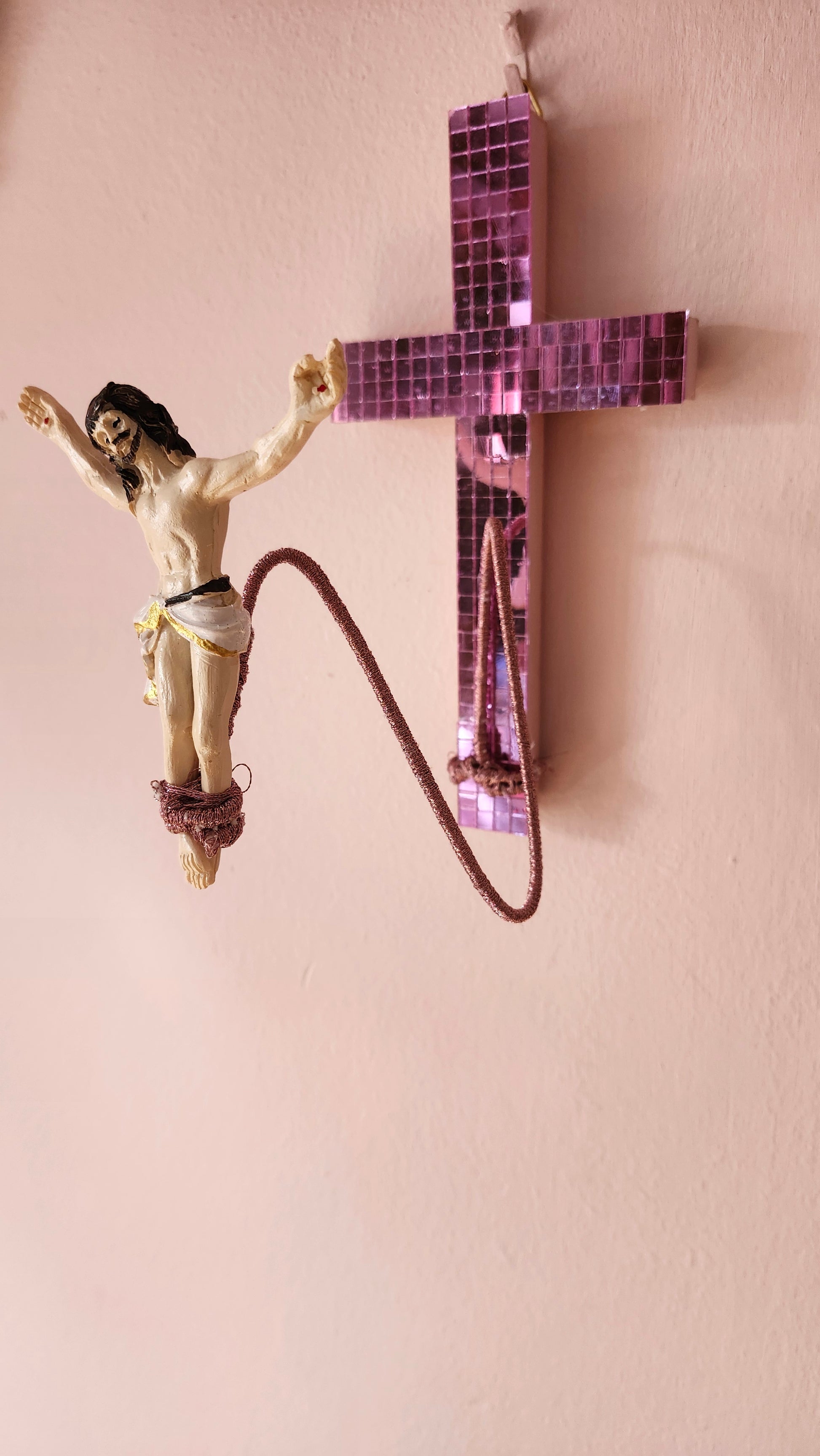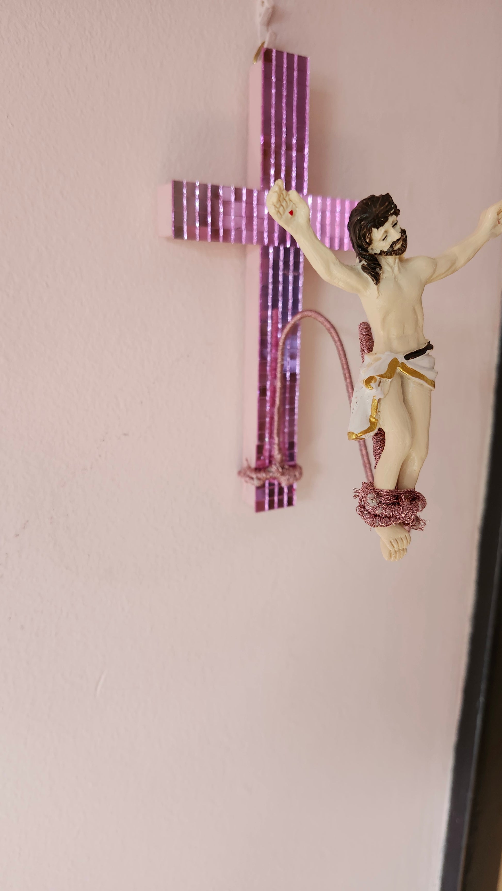 Pink mirror tile cross