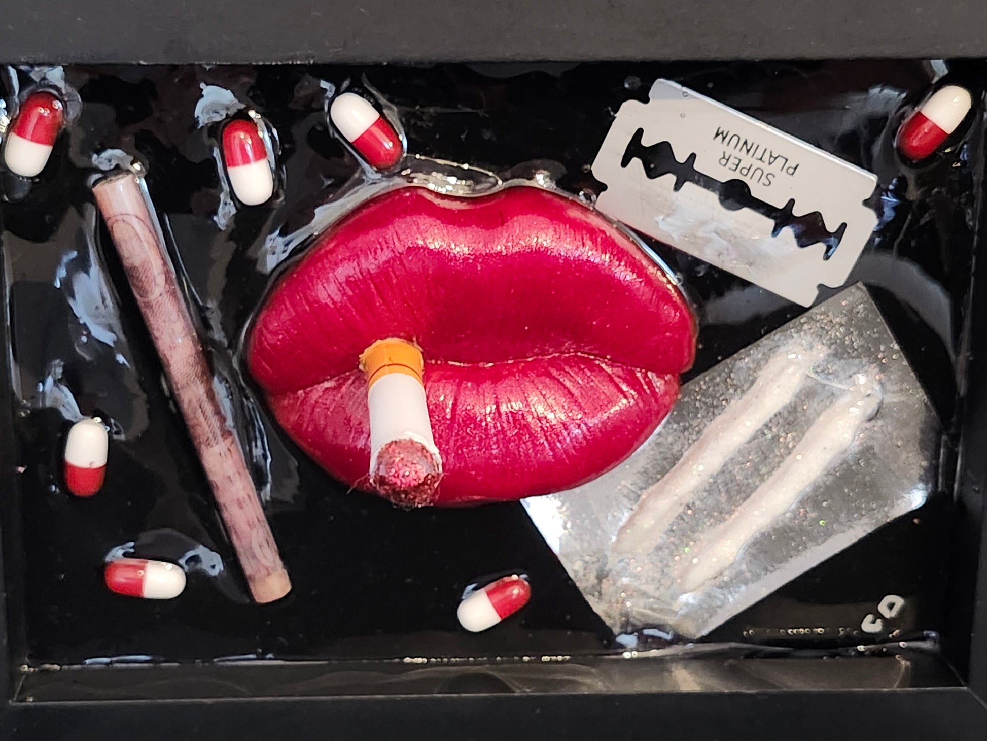 3D Lips Smoking Debauchery Lips & Tongue wall art picture framed