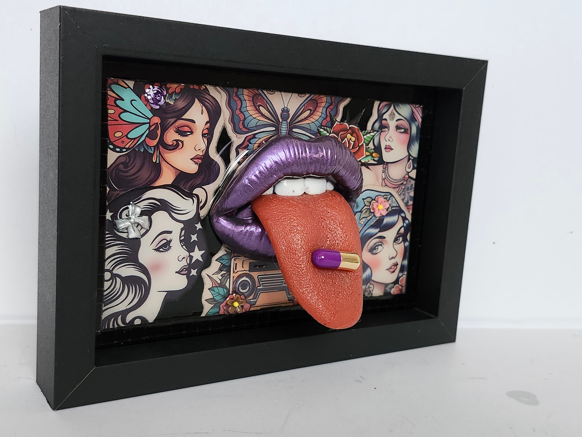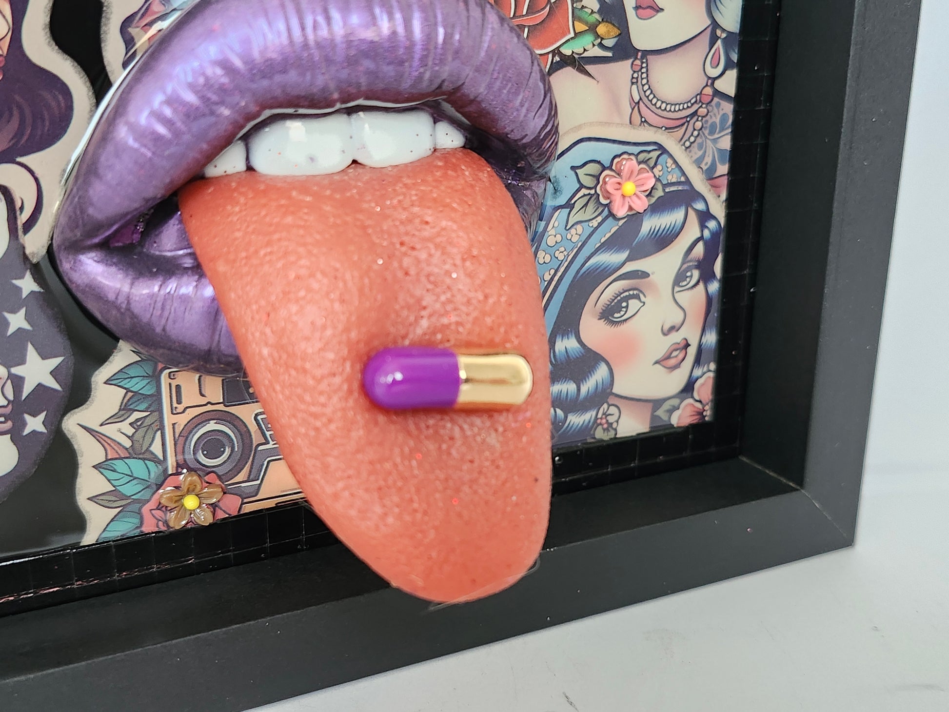 3D Lips / Tongue Pinup Girl tattoo Lips & Tongue wall art picture framed