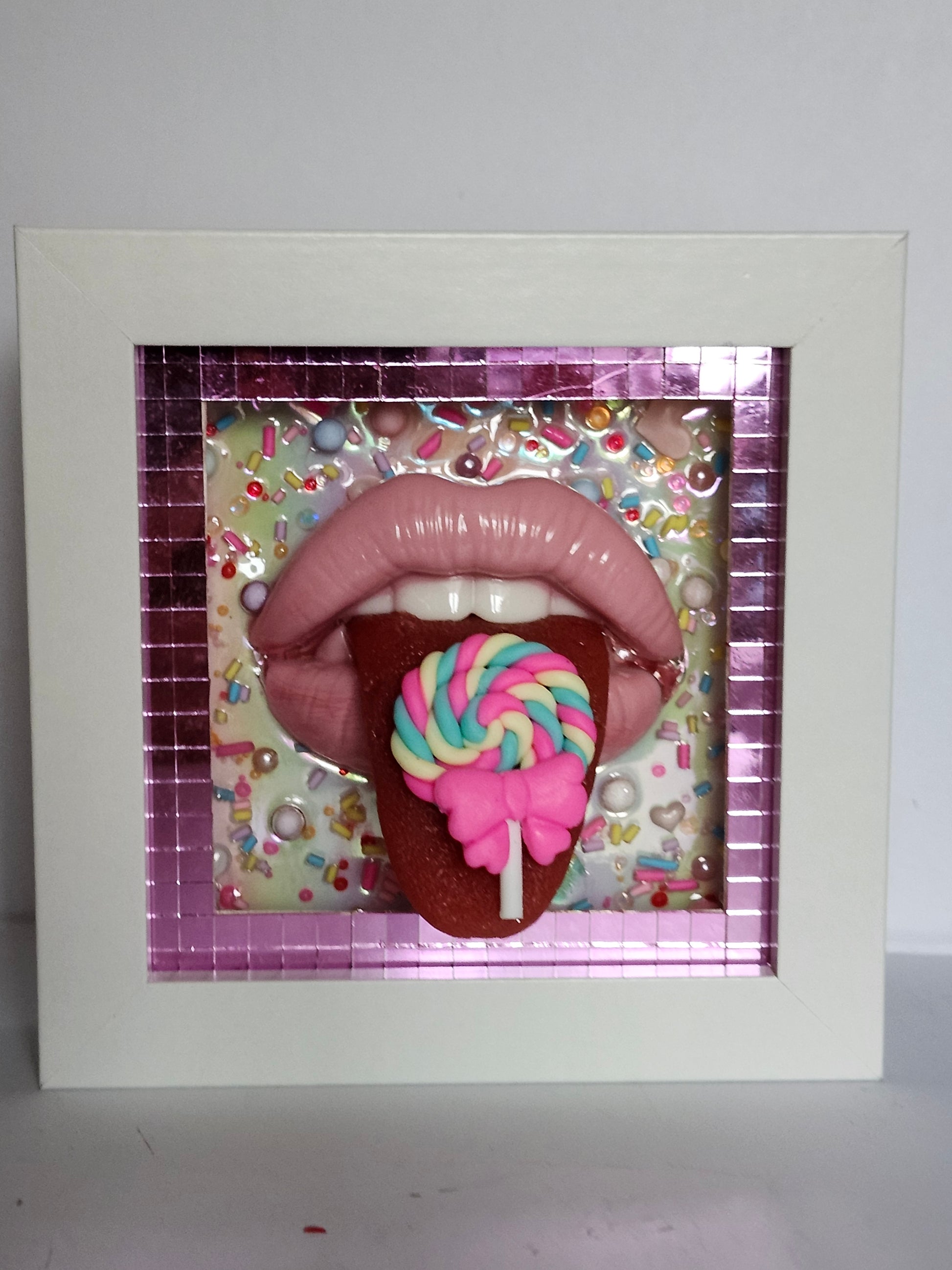 3d Lips realistic tongue framed pop wall art. Approx 10cms squared.