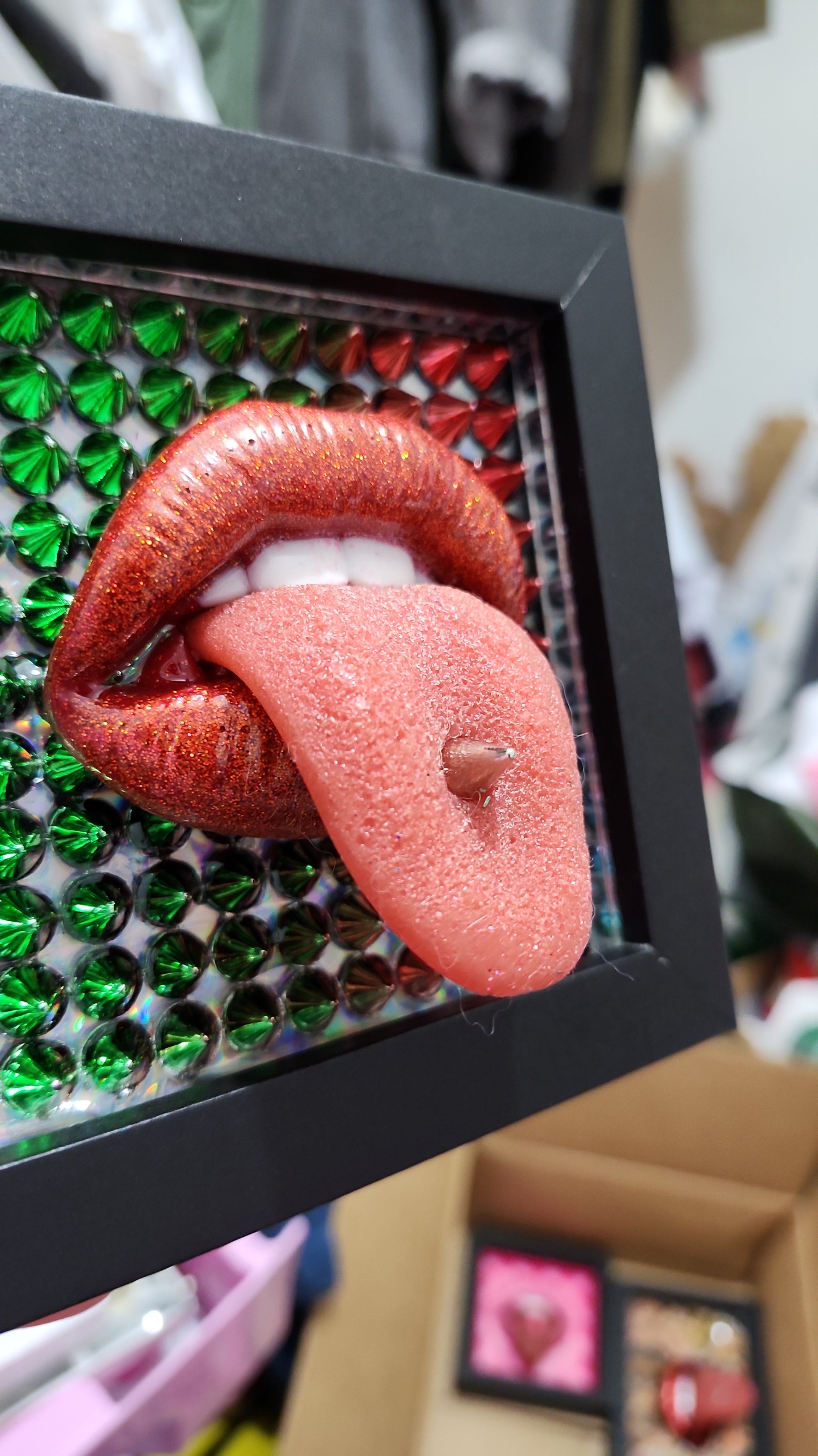 3d Lips realistic tongue framed pop wall art. Approx 10cms squared.