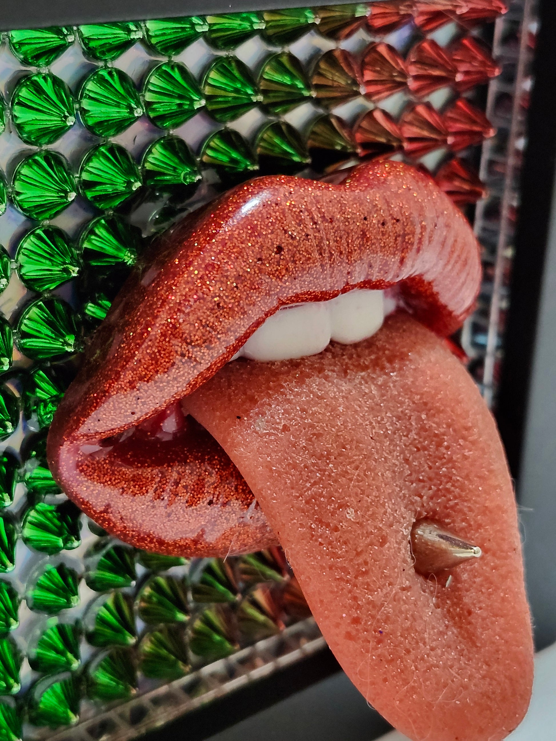 3D Lips & Tongue RAINBOW STUDS wall art picture framed