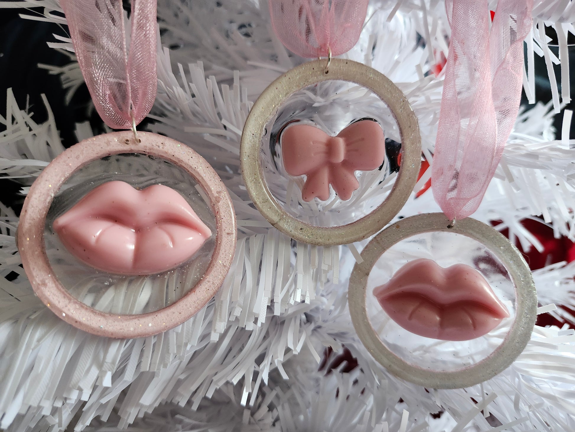 Set of 3 Hanging Lips & bow Christmas Tree Ornaments