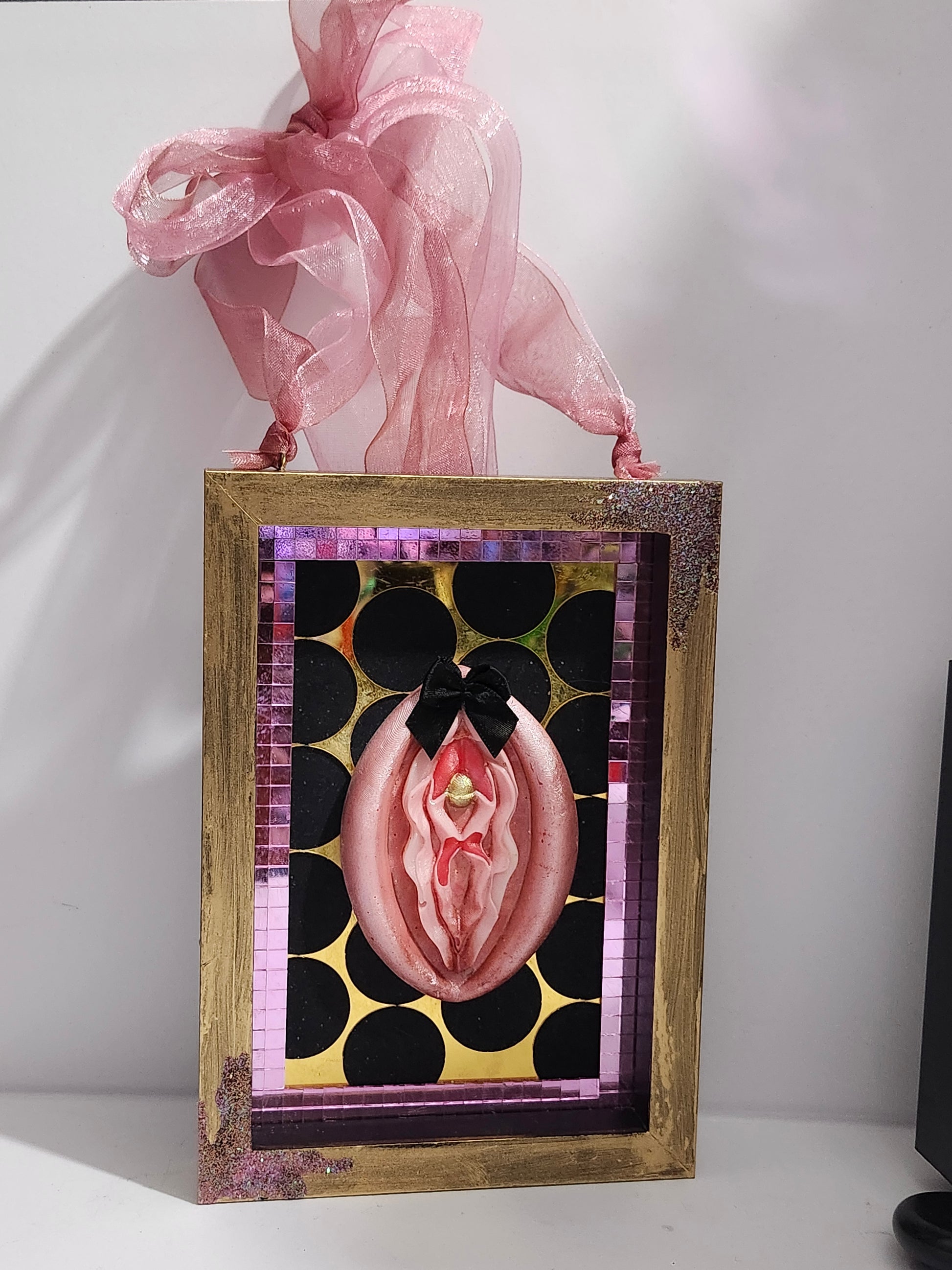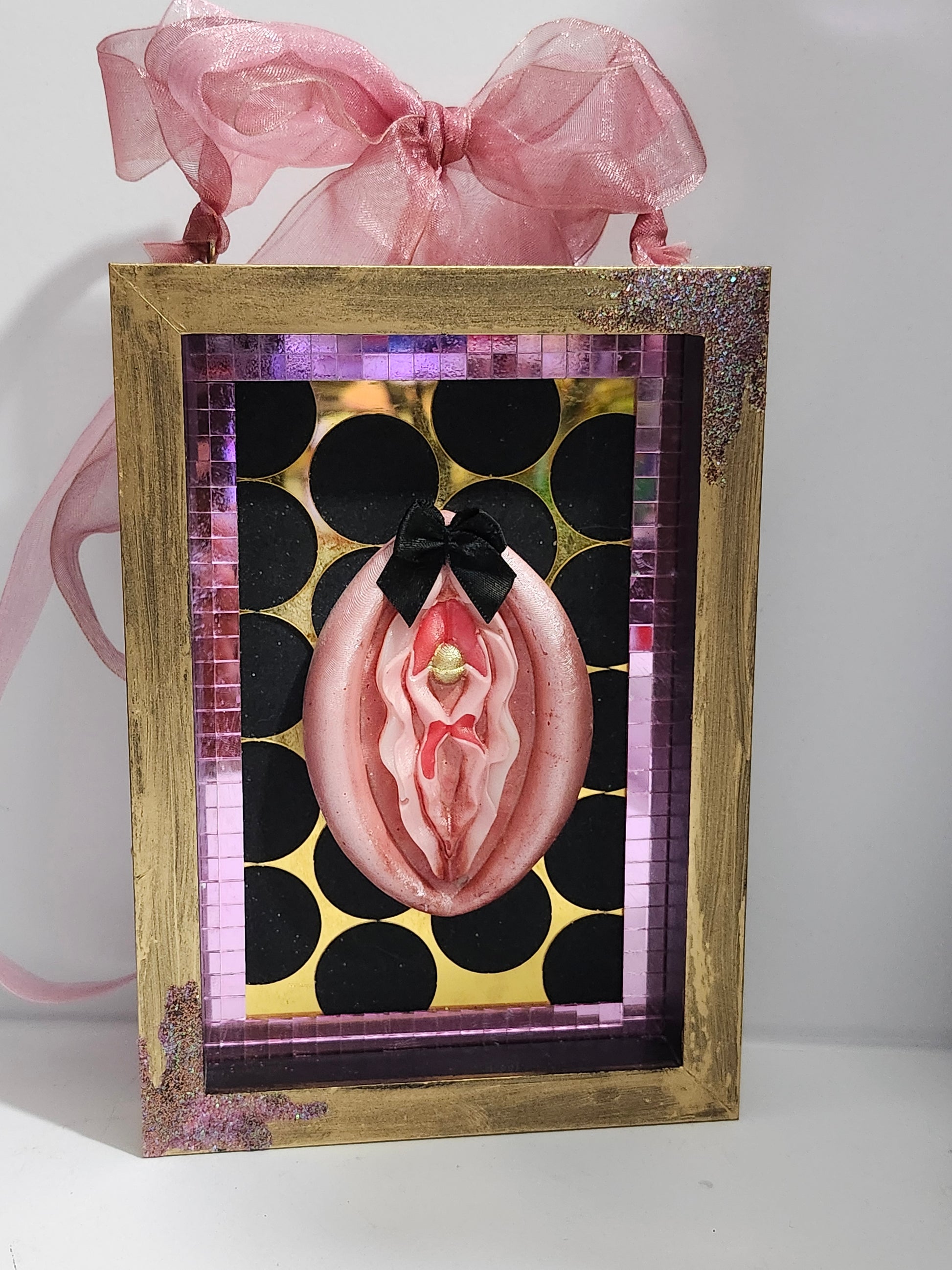 Framed picture with disco mirror trim